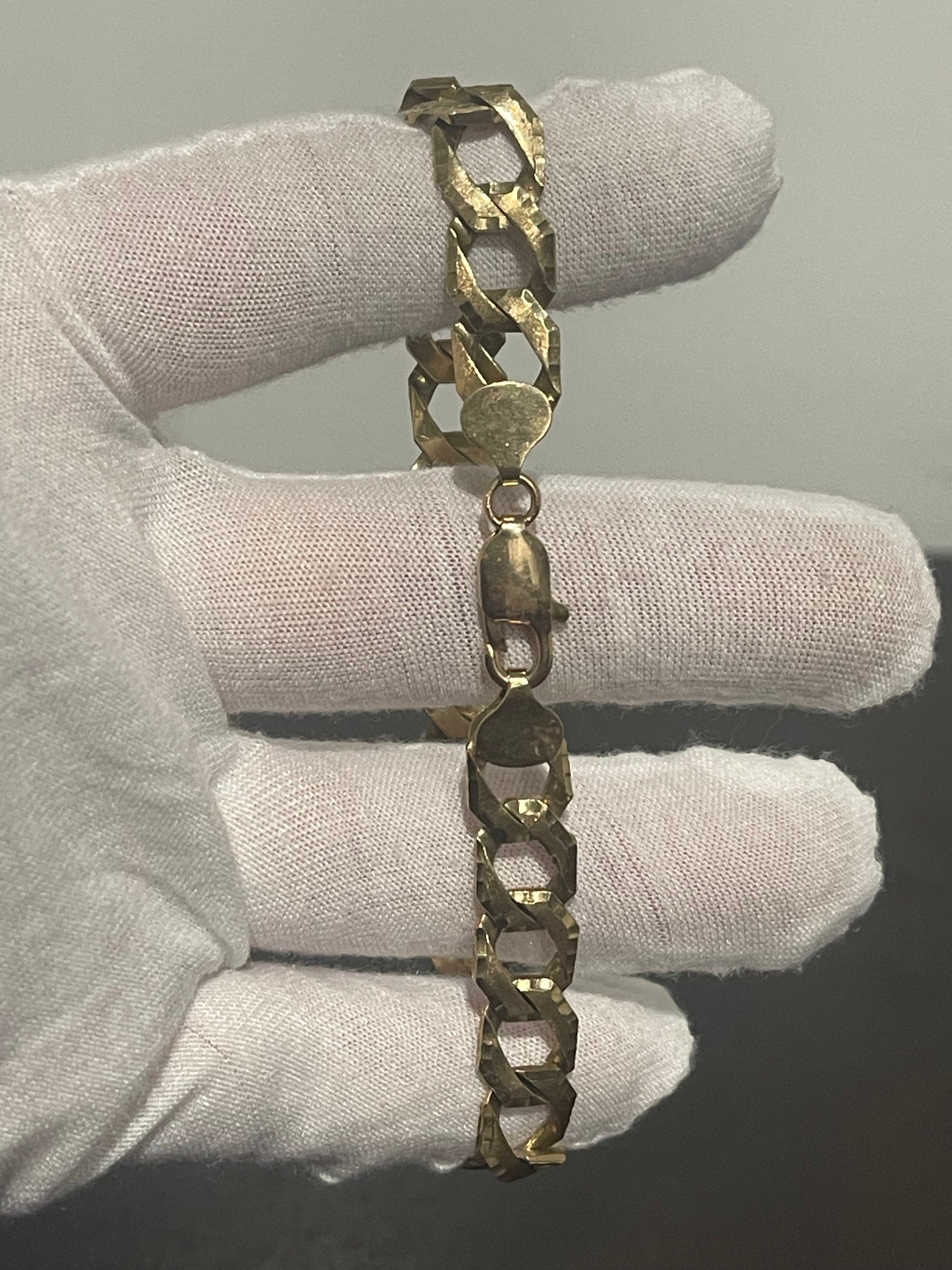 Solid 10kt gold bracelet 8.5”, reversible bracelet with one side smooth polished & other side diamond cut 17.04grams