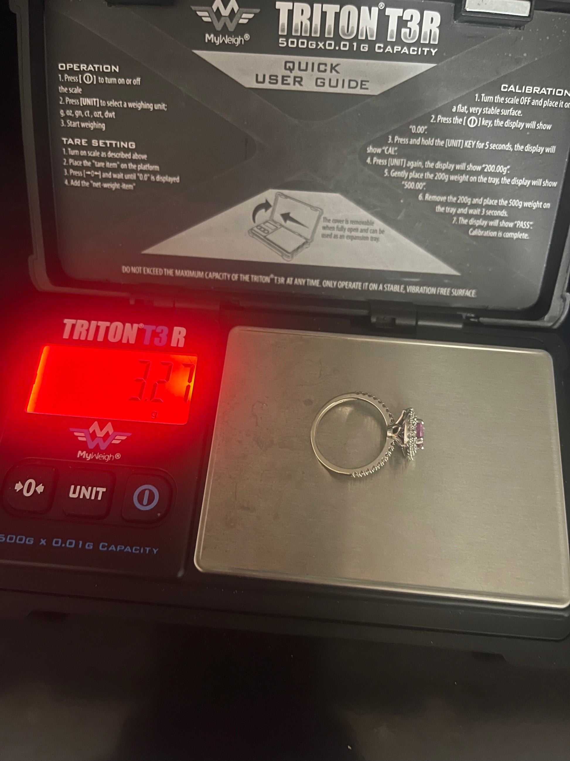 10kt white gold diamond ring with pink stone in centre size 5.5 and 3.27g total